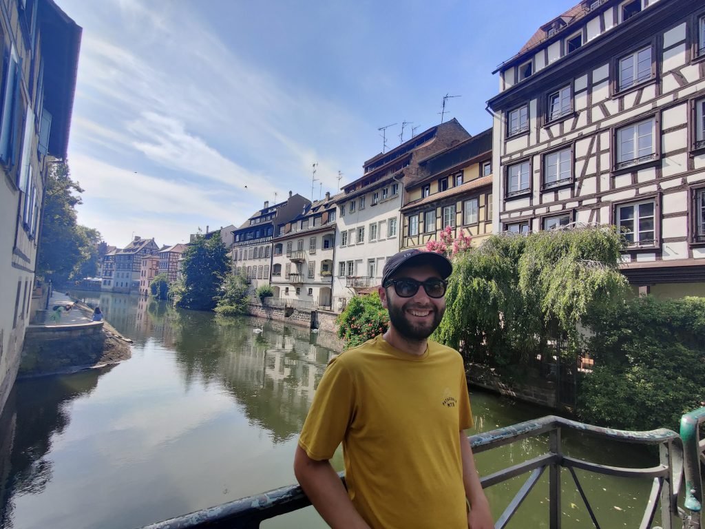 We’ve not spent a lot of time in France so far but I truly loved our night in Strasbourg. The apartment we stayed in, organised through WarmShowers, was on the fifth floor and had a gorgeous balcony. I felt like I was transported into a romantic novel where a twenty something girl escapes urban life and discovers a love of patisserie. Wandering around the market in the morning felt like floating through a maze of ever-changing smells with a background soundtrack of lightning fast, passionate and completely nonsensical (to me anyway) conversation. I wasn’t expecting it, but I really loved Strasbourg. The combination of the beautiful apartment, the canal-centric energetic city and a very delicious almond croissant was enough to bewitch me under the city’s spell.